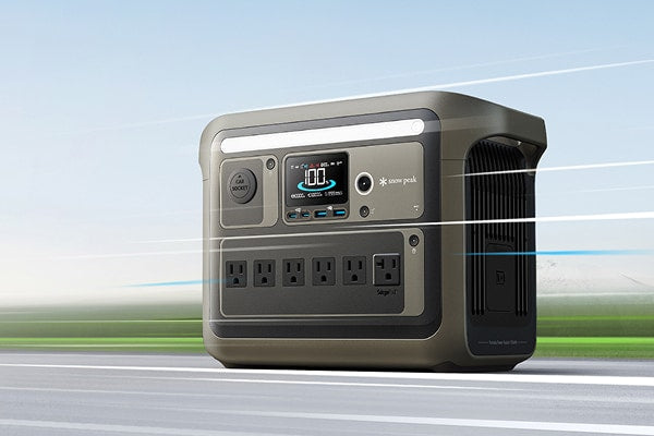 キャンプやアウトドアシーンにピッタリの特別カラーを採用した大人気ポータブル電源のSnow Peakコラボモデル。 家庭用コンセントと同じ定格1500W出力でドライヤーやケトルなど、様々な家電をアウトドアシーンでもご使用いただけます。