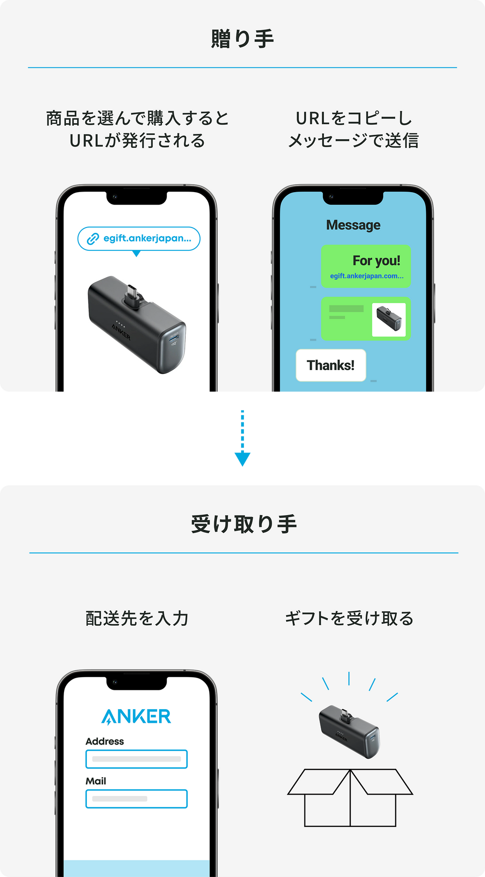 Anker Japan 公式オンラインストアで販売されている多くの製品をeギフトとしてプレゼントできます。