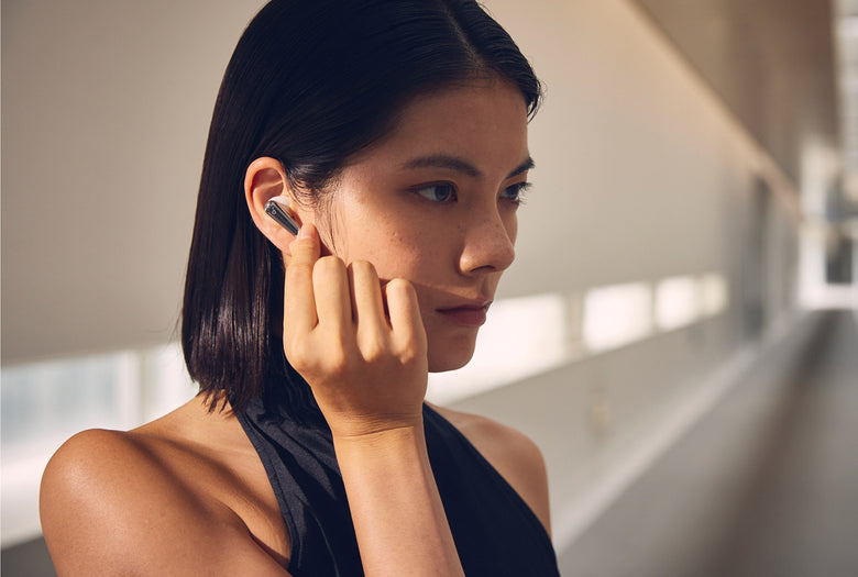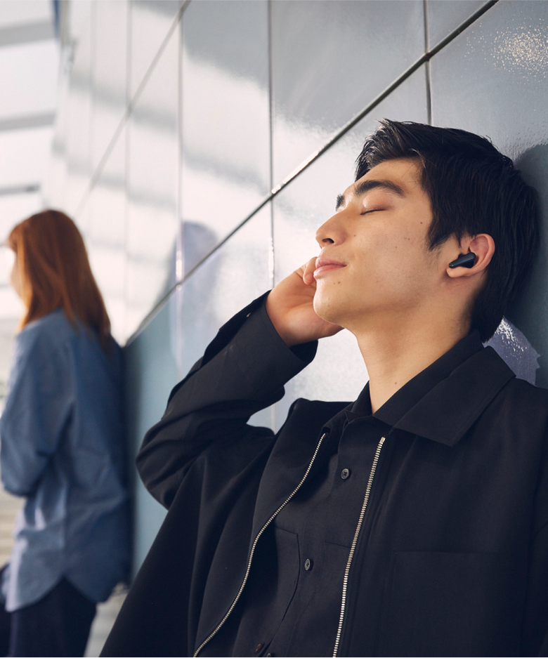 - イヤホン本体の操作:感圧操作 (イヤホン下部をつまむ) と、スワイプ操作 (イヤホン下部の窪みを上下にスライド) の2つの操作に対応しています。具体的な操作方法は製品ページ、または製品同梱のクイックスタートガイドを参照ください。