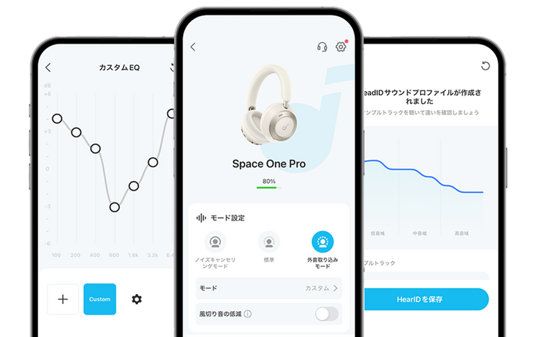 Soundcoreアプリ上で特定の周波数帯域における音の聞き取りやすさを測定し、