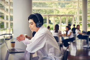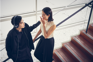 5段階の強度調整が可能な外音取り込み機能。着脱の手間なく、会話や公共施設のアナウンスを聞けます。