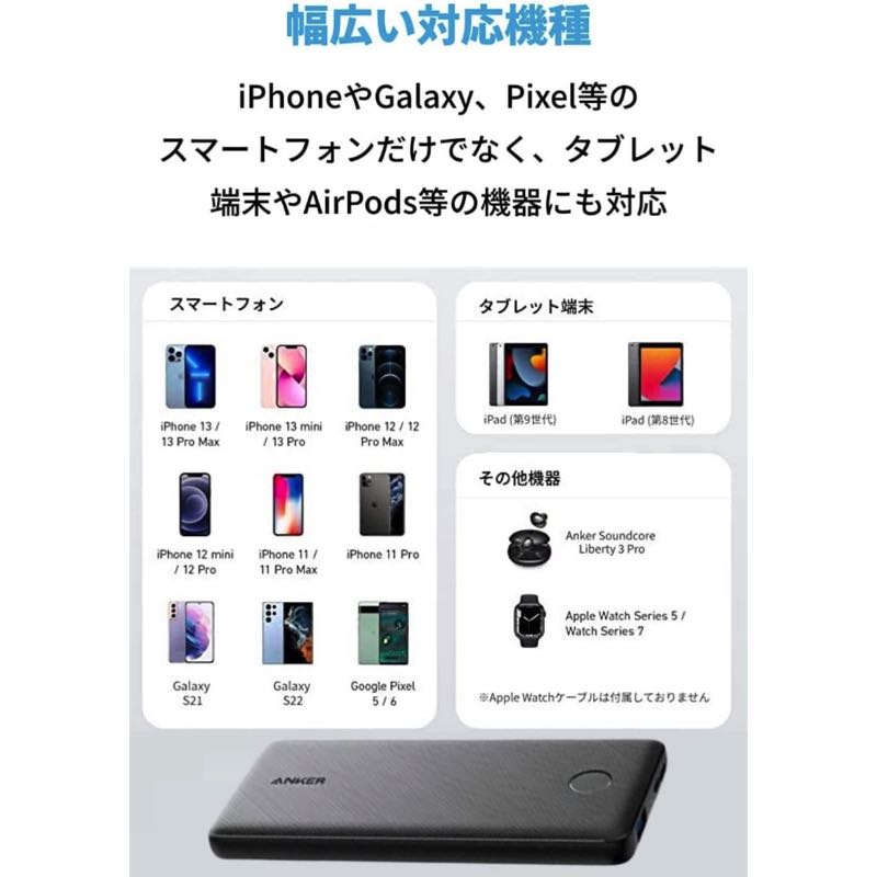 パッケージ内容 Anker PowerCore Slim 10000、USB-C & USB-C ケーブル (※ライトニングUSBケーブルは別売り) 、取扱説明書、18ヶ月保証 + 6ヶ月 (Ankerで会員登録後)、カスタマーサポート