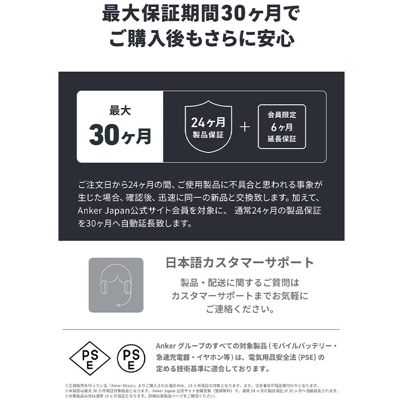 | ご注意 | ・パッケージ、製品、取扱説明書にて「Anker 737 Power Bank (PowerCore 24K) 」と記述になっておりますが、「Anker 737 Power Bank (PowerCore 24000) 」となりますので、ご安心ください。 |