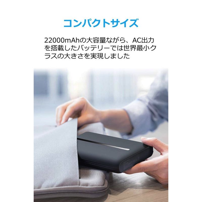 iPad miniよりも一回り小さいデザイン。22000mAhの大容量でACポートも搭載したバッテリーでは世界最小クラスのサイズ。