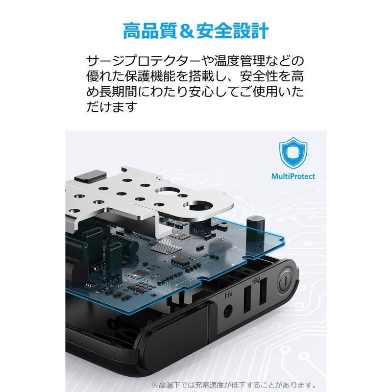 ノートパソコンだけではなく、スマートフォンやタブレット端末などのUSB機器へもAnker独自技術のPowerIQによりフルスピード充電が可能です。外出先での充電トラブルはこれ一台ですべて解決できます。