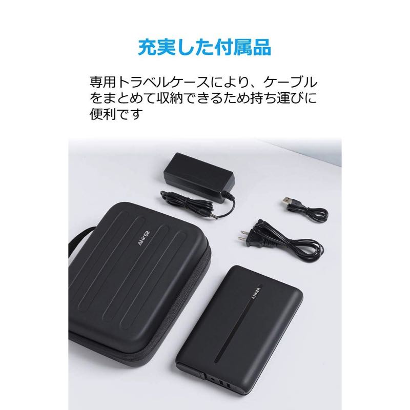 | パッケージ内容 | Anker PowerCore AC、専用トラベルケース、AC充電器、Micro USBケーブル(※ライトニングUSBケーブルやUSB-Cケーブルは同梱しておりません)、取扱説明書、18ヶ月保証 + 6ヶ月 (Ankerで会員登録後)、カスタマーサポート |