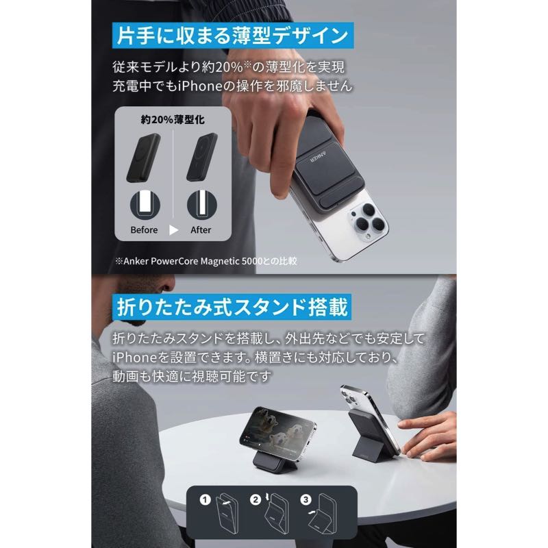 iPhone16を購入したタイミングで購入。外出先等で充電器が必要なく充電できるのが良い。また持ち運びもコンパクトなのでかさばらない。