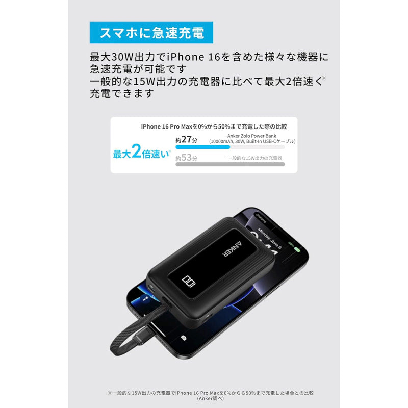 Anker Zolo Power Bank (10000mAh, 30W, Built-In USB-Cケーブル)
