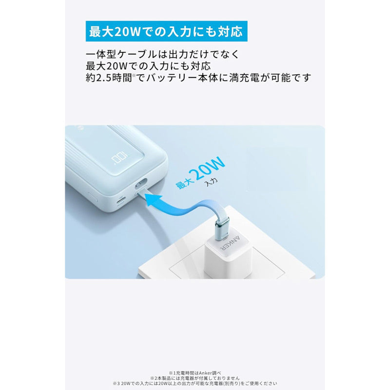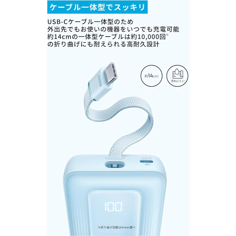 Anker Power Bank (30W, Fusion, Built-In USB-C ケーブル)