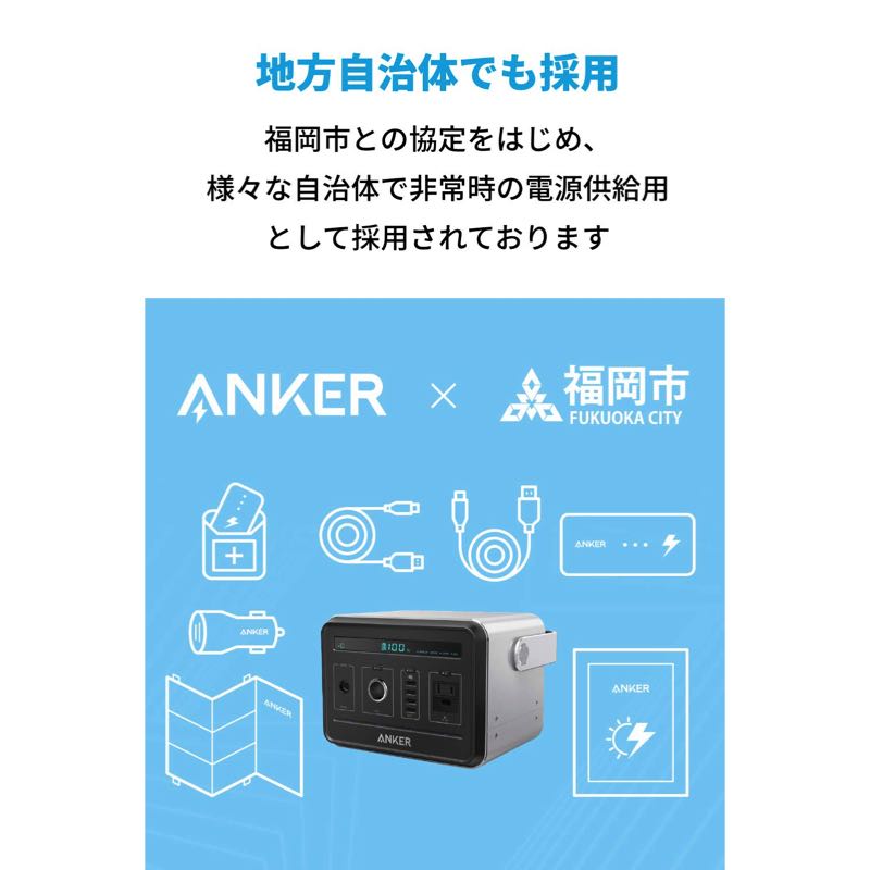 PowerHouseは福岡市や川崎市との協定をはじめ、様々な自治体で非常時の電源供給用として採用されています。避難所における緊急的な電源確保や携帯端末の充電等、災害時の応急対策に活用されています。