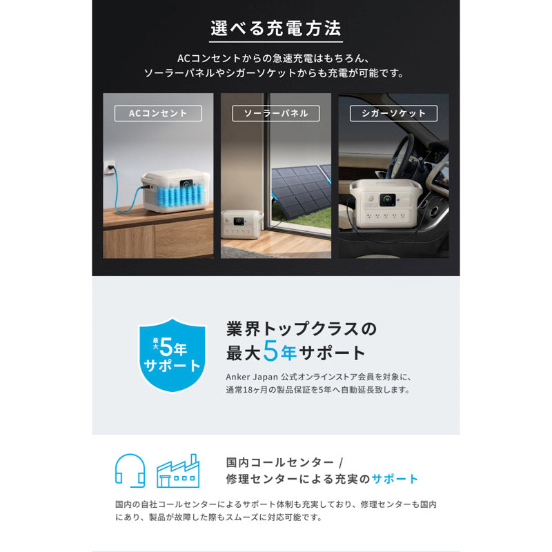 ※Anker Japan 公式オンラインストア会員を対象に、通常18ヶ月の製品保証を5年へ自動延長致します。コンパクトでも、家族サイズ。世界最小※クラスの大容量ポータブル電源