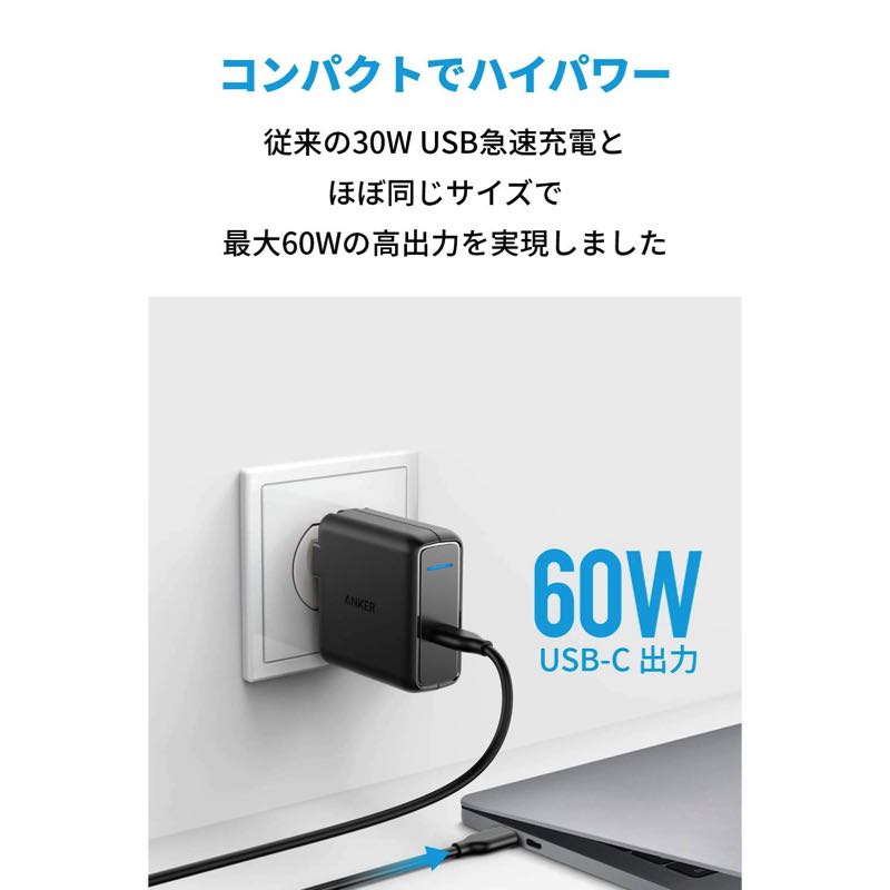 | パッケージ内容 | Anker PowerPort Speed 1 PD 60、取扱説明書、18ヶ月保証 + 6ヶ月 (Ankerで会員登録後)、カスタマーサポート |