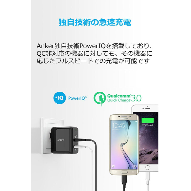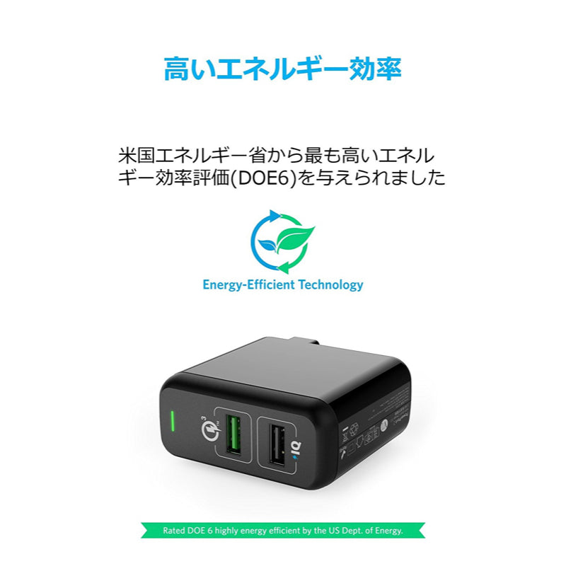 | ご注意 | ・Apple製品はQualcomm Quick Chargeに対応していませんが、PowerIQポートから最大スピードで充電ができます。 |