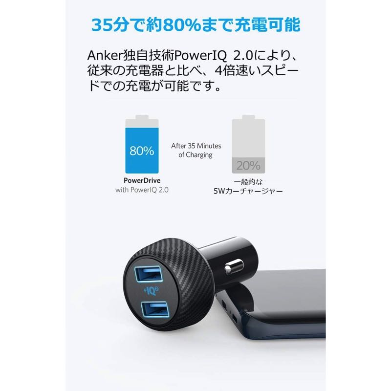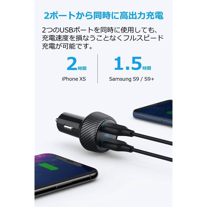 Anker独自技術PowerIQ 2.0により、従来の充電器と比べ、4倍速いスピードでの充電が可能です。※お使いの機器により、充電速度は異なります。(DC 12/24V入力対応)