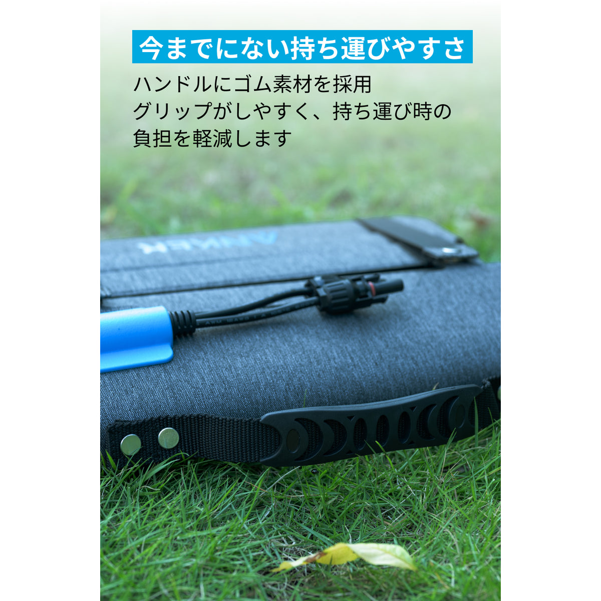 ベストセラーモデル※「Anker Solix PS100 Portable Solar Panel」から約25%軽量化し、約1.1kg軽くなりました。さらに、本製品はハンドルにゴム素材を採用しているため、手への負担も軽減します。