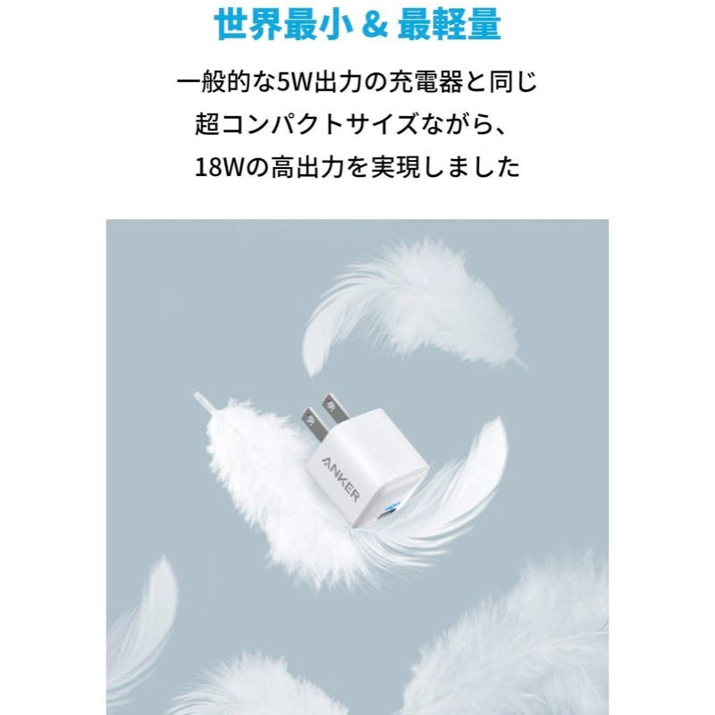 重さはわずか30g、単3電池 約1本分の超軽量デザインです。AnkerのPD対応急速充電器では最軽量のコンパクトさを実現しました。カバンやポケットに簡単に収納でき、どこにでも気軽に持ち運ぶことができます。