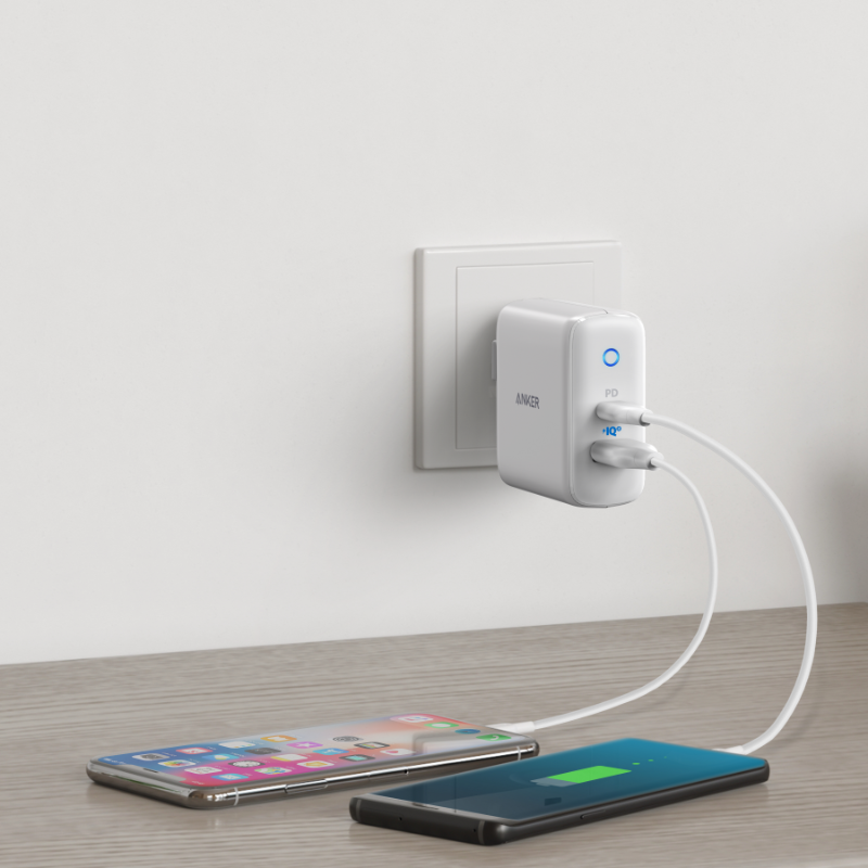 USB-C対応のノートパソコンやスマートフォン、タブレット端末などを最大18Wで充電できます。また、もう1つのポートもAnker独自技術の「PowerIQ 2.0」により最大15Wで全ての標準的なUSB機器にフルスピード充電が可能です。