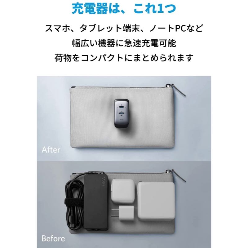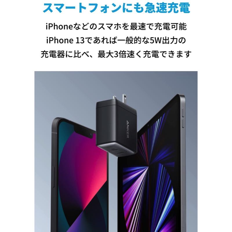 Anker Nano II 65Wには満足していましたが、スマホの充電をするときに もう一口 USBがって 思っていたので この商品を購入しました。Anker Nano II 65Wと使い分けしながら使っています。