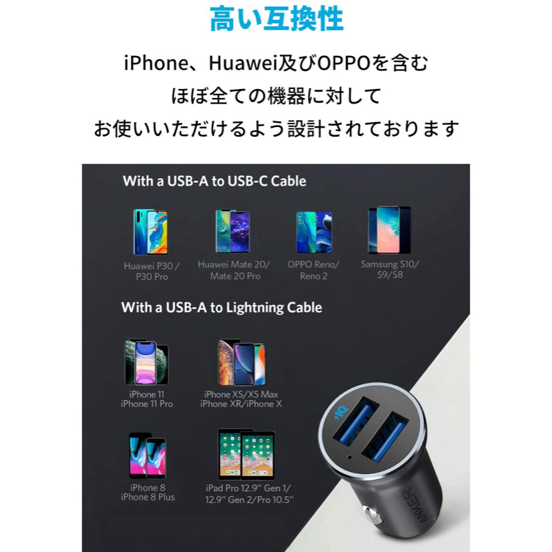 | パッケージ内容 | Anker PowerDrive II 2-Port 24W Alloy、取扱説明書、18ヶ月保証 + 6ヶ月 (Ankerで会員登録後、カスタマーサポート |