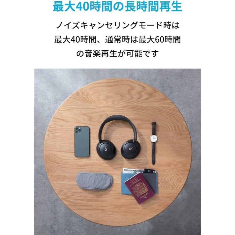 再生時間 最大40時間 (ノイズキャンセリングモード) / 最大60時間 (通常)