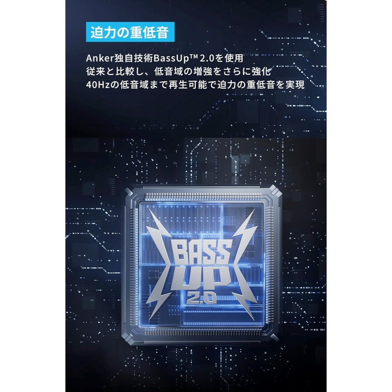 Anker独自技術BassUp2.0を使用。従来と比較し、低音域の増強をさらに強化。40Hzの低音域まで再生可能で迫力の重低音を実現。