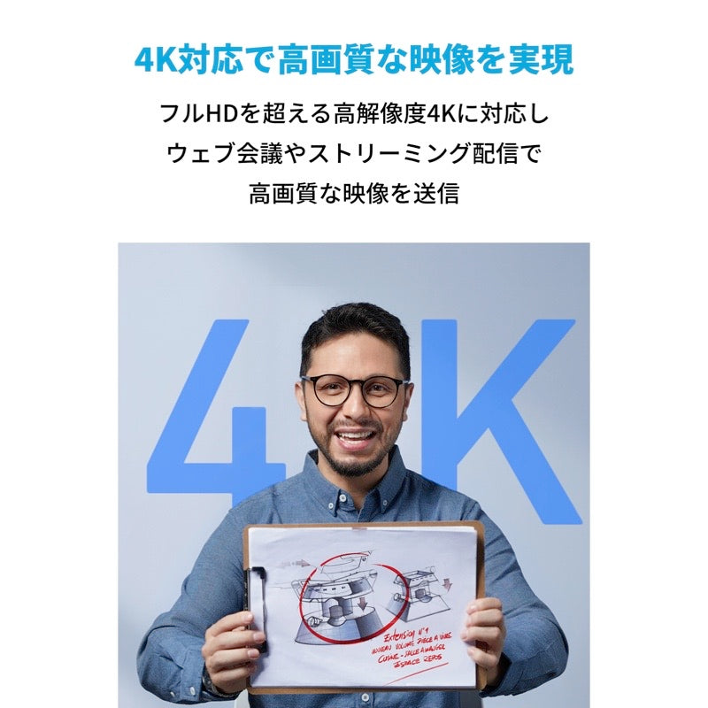 1/2.5インチセンサーを搭載することで、フルHDを超える高解像度4Kに対応し、ウェブ会議やストリーミング配信で高画質な映像を送信可能です。なめらかで鮮明な映像