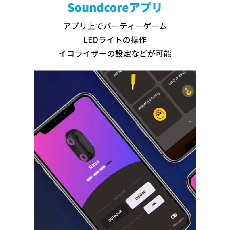 Soundcoreアプリには3つのパーティーゲームが搭載されており、音楽を楽しみながら家族や友達と遊ぶことができます。持ち運びに便利