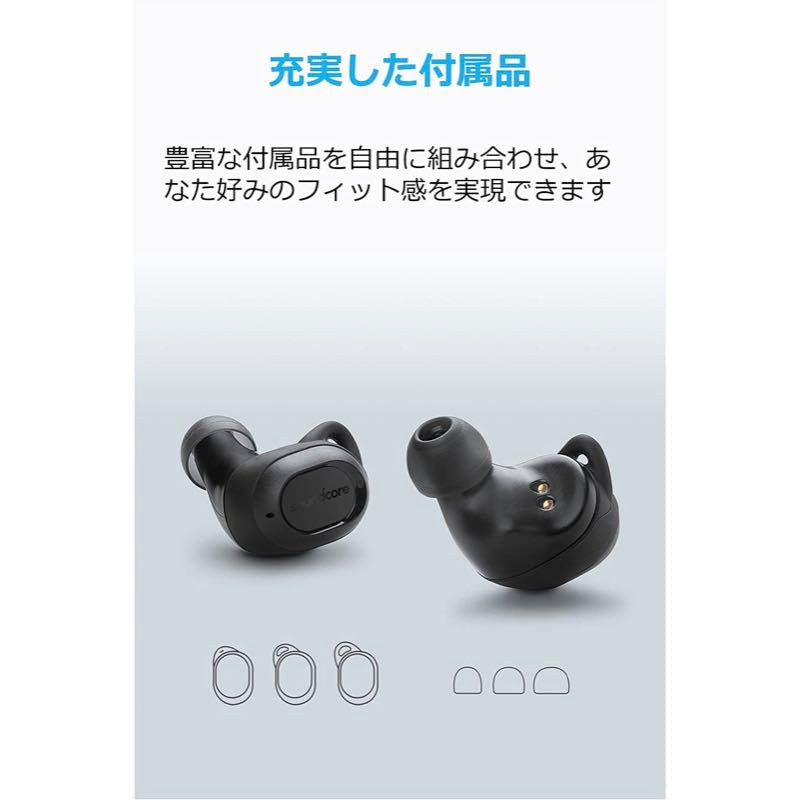 | パッケージ内容 | Soundcore Liberty Lite、充電ケース、イヤーチップ(XS / S / M / L )、イヤーウィング( XS / S / M / L )、Micro USBケーブル、取扱説明書、18ヶ月保証 + 6ヶ月 (Ankerで会員登録後)、カスタマーサポート |