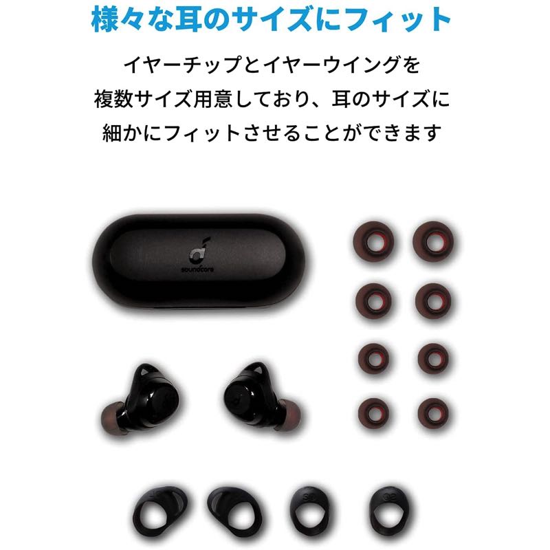 パッケージ内容 Soundcore Liberty Neo 2、充電ケース、イヤーチップ (XS / S / M / L / XL *Mサイズは本体に取り付け済み) 、イヤーウィング (S / M / L *Mサイズは本体に取り付け済み) 、USB-C&USB-Aケーブル、クイックスタートガイド、安全マニュアル、18ヶ月保証 + 6ヶ月 (Ankerで会員登録後) 、カスタマーサポート