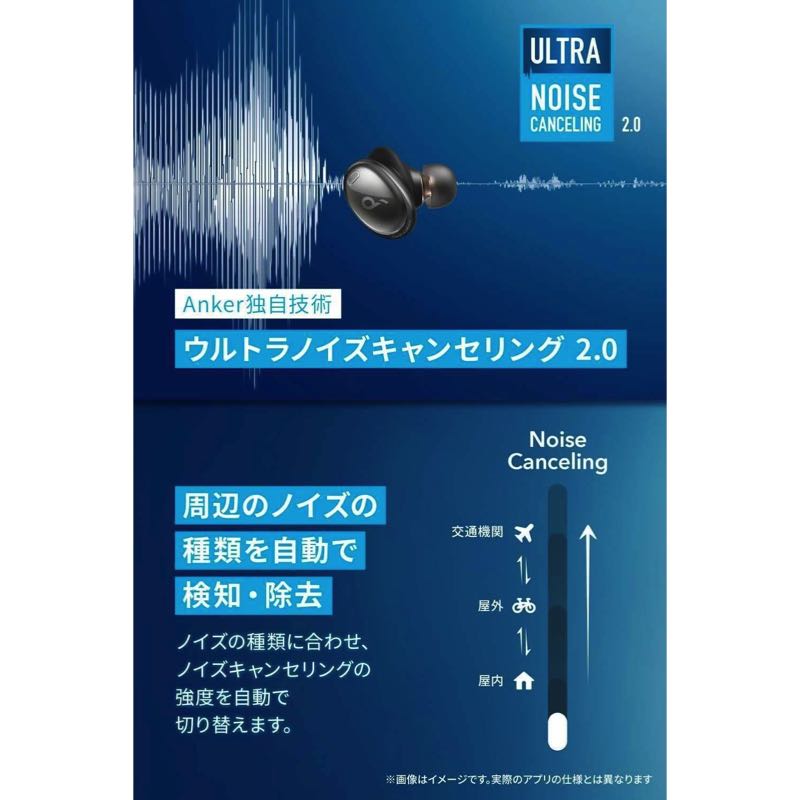 ※ウルトラノイズキャンセリング 2.0をご使用の際、はじめにSoundcoreアプリ上でHearIDの測定を実施ください。 -
