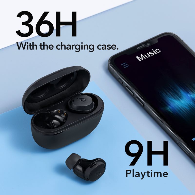イヤホン本体が満充電の状態で最大9時間、付属の充電ケースを合わせて使えば最大36時間の音楽再生が可能です。また、10分間の充電で約2時間の音楽再生が可能です。 (※再生可能時間は、音量、再生する内容、使用環境によって異なります)クリアな音声通話