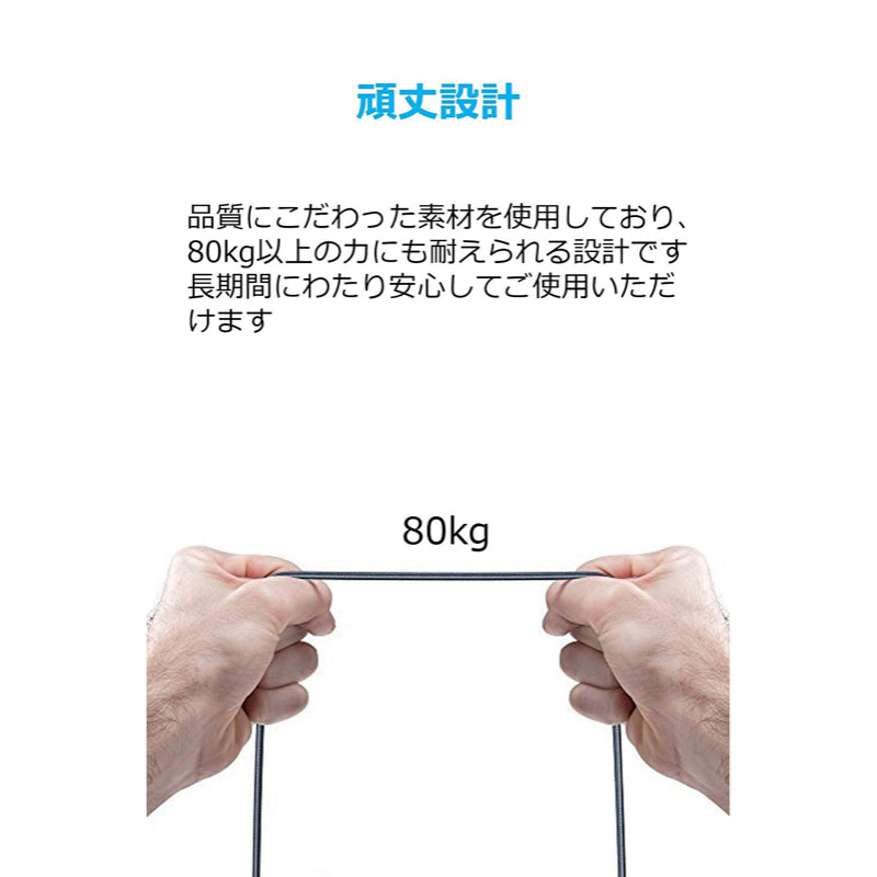 外部には二重に編み込まれた高耐久ナイロン、内部には高耐久素材を使用。ケーブルが絡みにくくなりました。