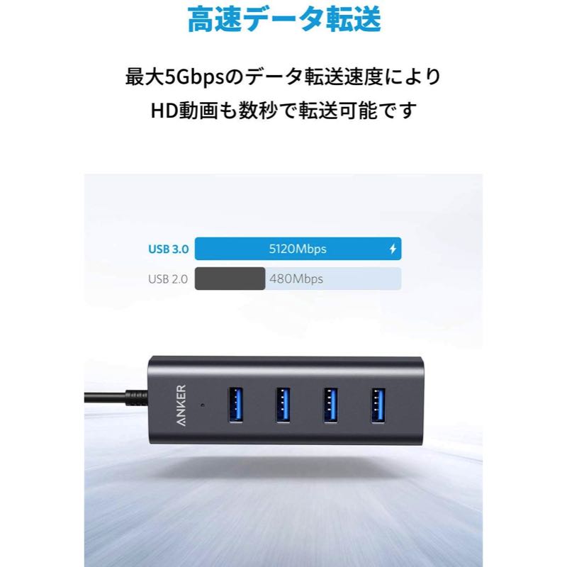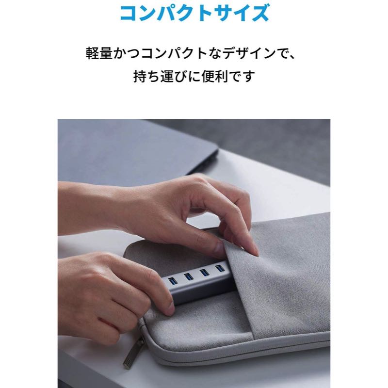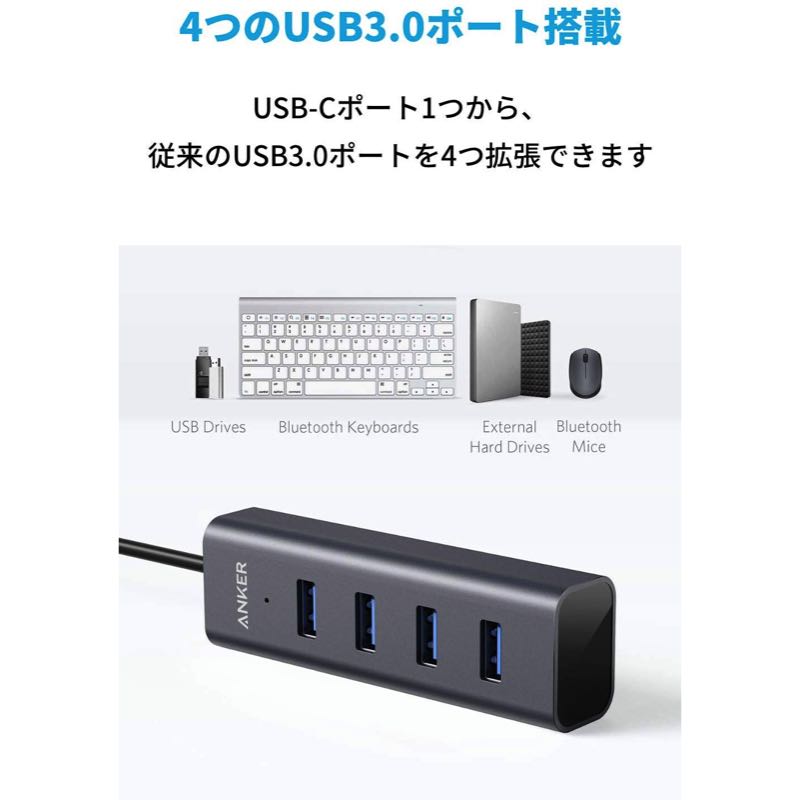 Anker USB-C 4ポート USB3.0 ハブは、USB-CポートのついたノートPCや周辺機器に対応しています。ポートの拡張