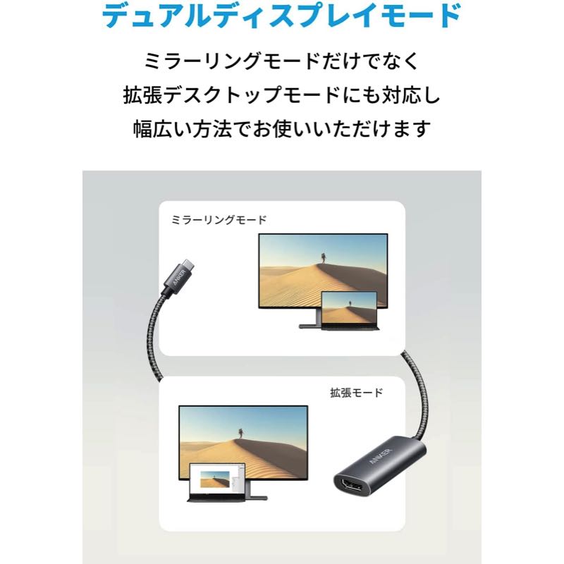 | パッケージ内容 | Anker 518 USB-C Adapter (8K HDMI) 、取扱説明書、18ヶ月保証 + 6ヶ月 (Ankerで会員登録後) 、カスタマーサポート |