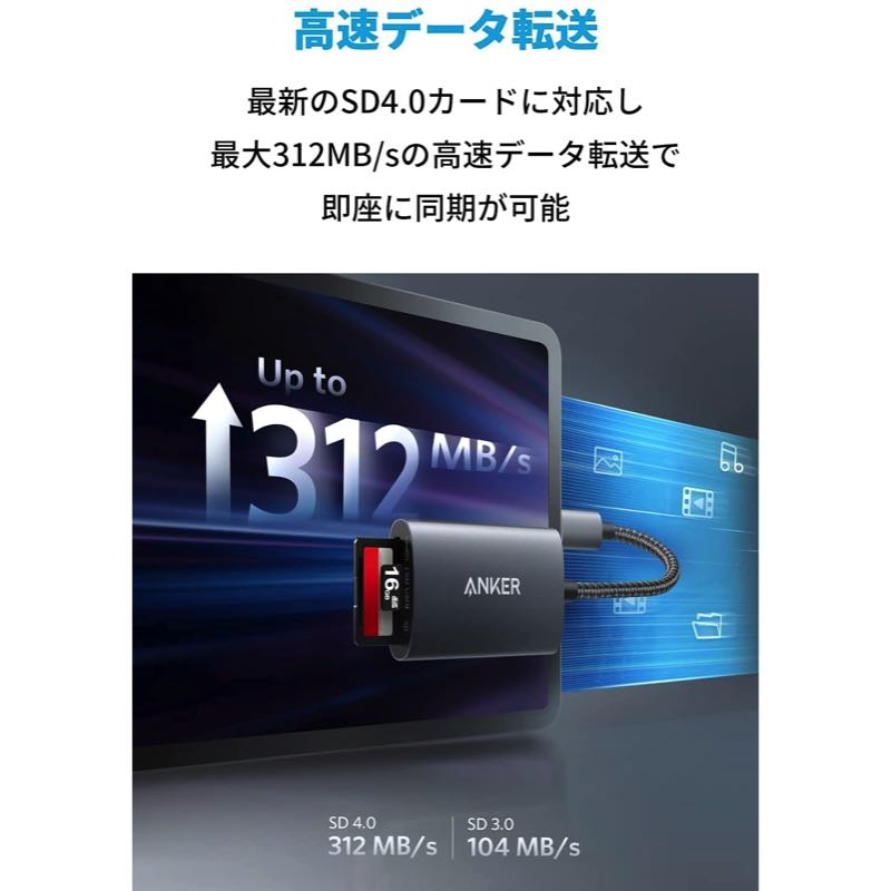 Anker USB-C PowerExpand 2-in-1 SD 4.0 カードリーダー