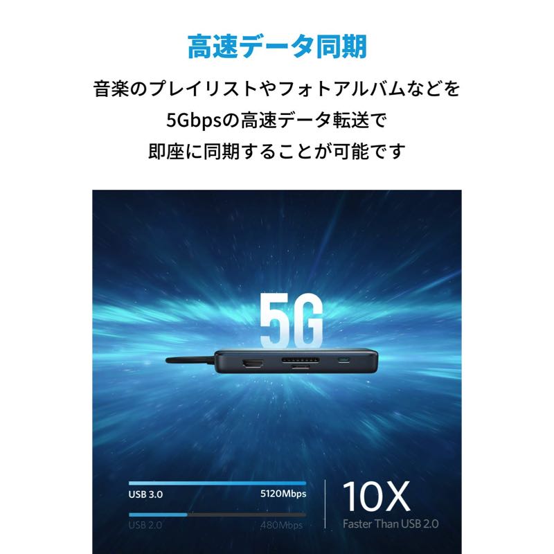 音楽のプレイリストやフォトアルバムなどを5Gbpsの高速データ転送で即座に同期することが可能です。