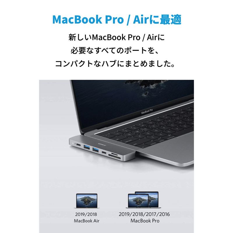 7つのポートを追加することで高速データ転送、高画質出力、高速パススルー充電をMacBook Pro / Air で行うことが可能です。幅広い機能