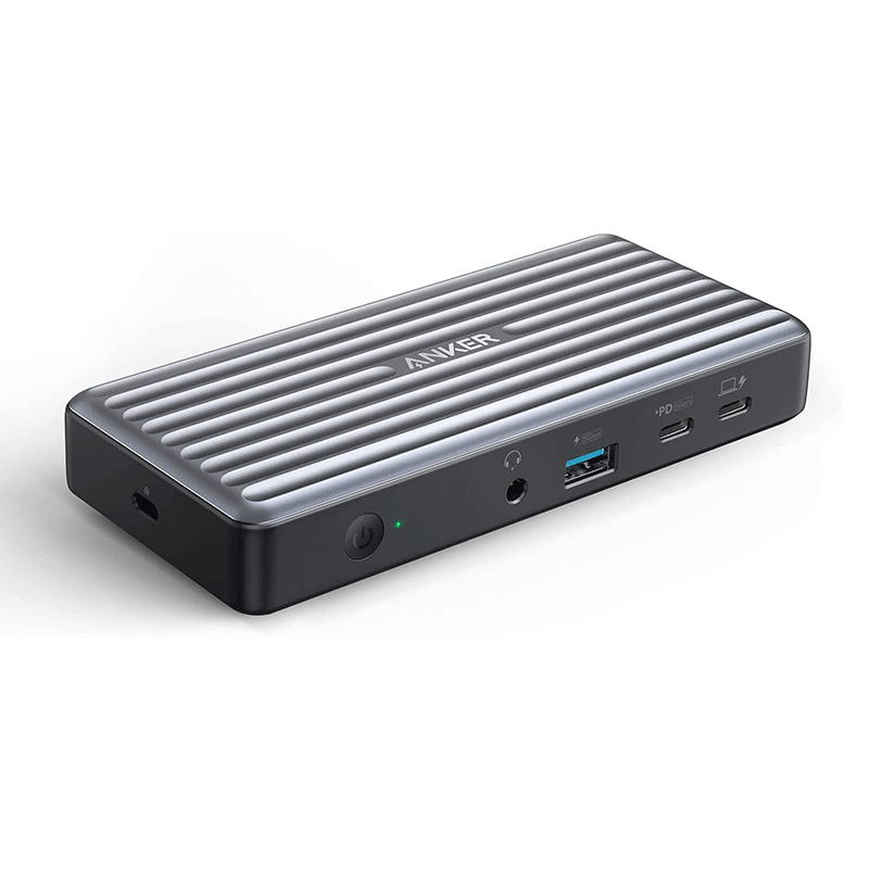 2つのUSB PD対応USB-Cポート、HDMIポート、ディスプレイポート、3つのUSB-Aポート、1Gbps対応イーサネットポート、3.5mmオーディオジャックに接続が可能です。フルスピード充電