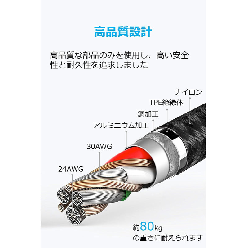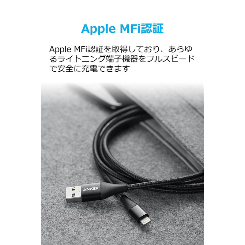 丈夫なケーブルとAppleMFI認証を受けているので安心して使用できます。 -