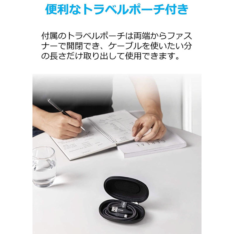 PCやスマートフォン、タブレット端末への充電に対応。あらゆるUSB-Cポート機器にお使い頂けます。持ち運びに便利なトラベルポーチ付き
