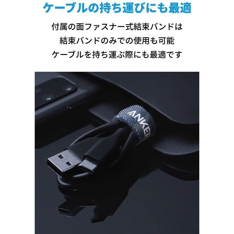 付属の面ファスナー式結束バンドは結束バンドのみでの使用も可能。バッグやポケットに入れてケーブルを持ち運ぶ際にも最適です。