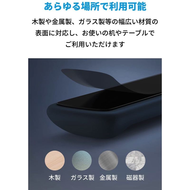 木製や金属製、ガラス製等の幅広い材質の表面に対応し、お使いの机やテーブルでご利用いただけます。