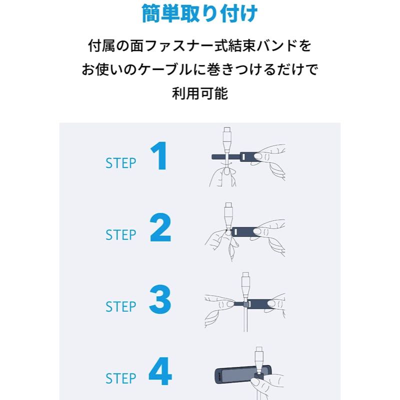 ベストセラー製品のAnker マグネット式 ケーブルホルダーに結束バンド式のケーブルホルダーが仲間入り。デスク周りの整理や、ケーブルの整理に便利な結束バンドが8つ入ったお得なモデルです。
