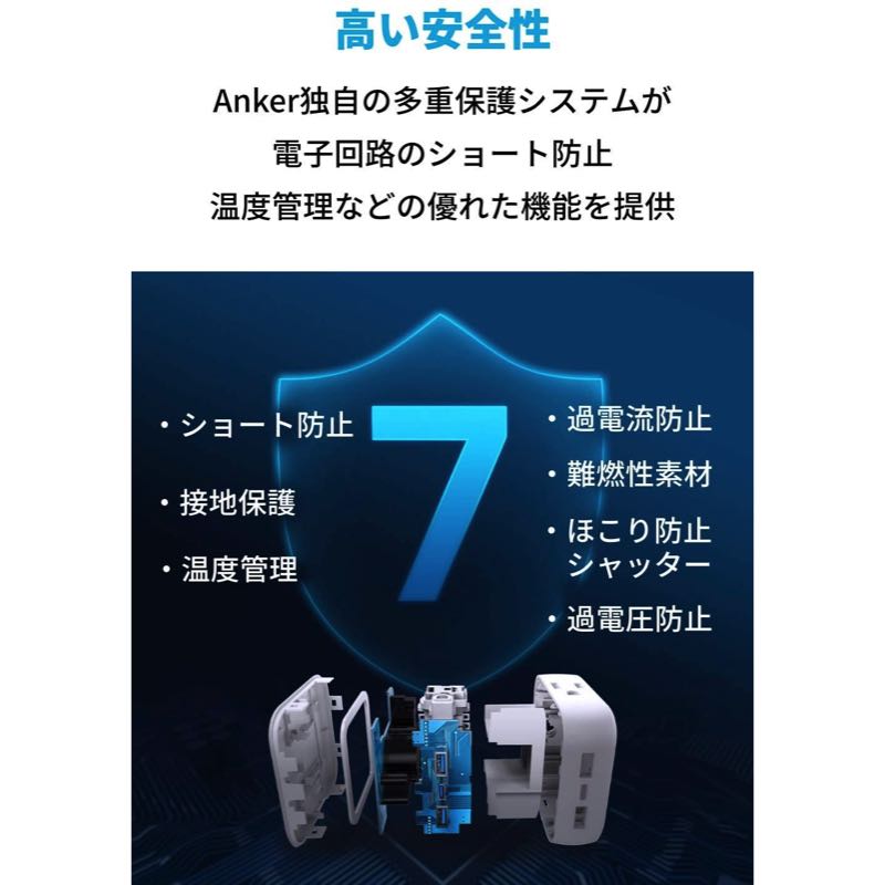 Anker独自の多重保護システムが電子回路のショート防止、温度管理などの優れた機能を提供し、長期間安心してお使いいただけます。製品仕様