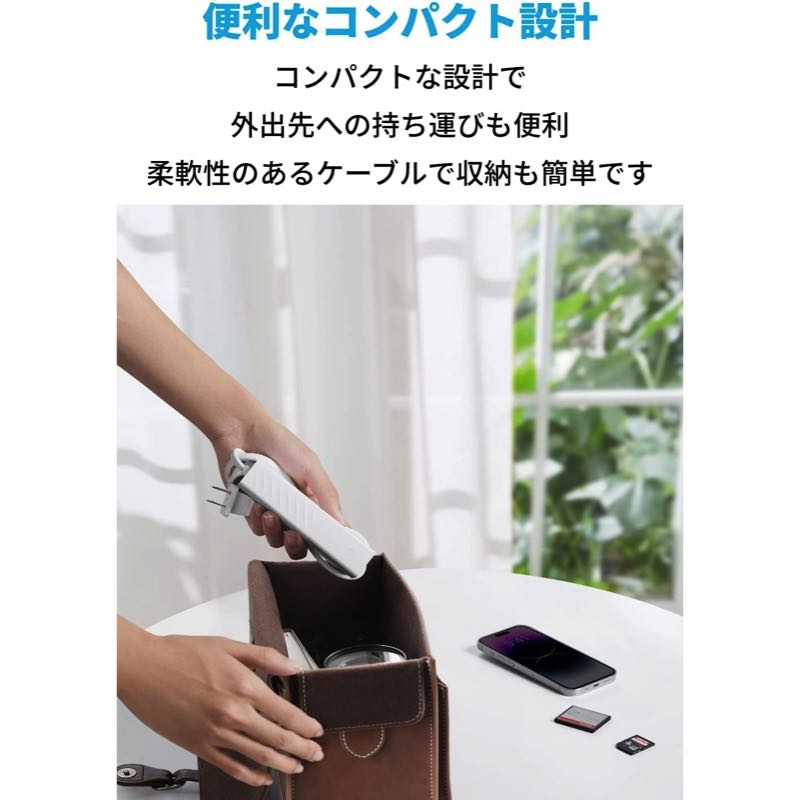 コンセントとUSBポートを備え、サイズもコンパクトなので自宅はもちろん、旅行先にもあまりかさばらず持っていけるので満足しています。デザインもシンプルなのも良い。