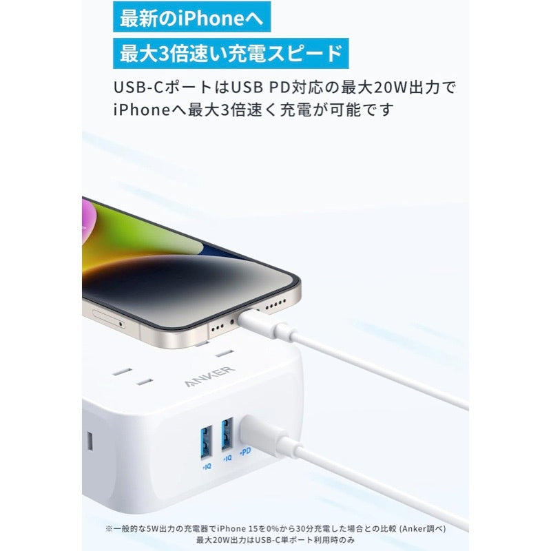 USB PD対応の最大20W出力で、iPhoneシリーズへ急速充電が可能です。 (Anker調べ。 最大20W出力はUSB-C単ポート利用時のみ)コンパクトサイズ