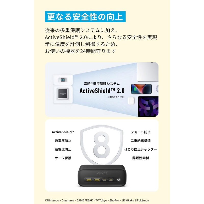 | パッケージ内容 | ピカチュウモデル USB付き電源タップ、取扱説明書、18ヶ月保証 + 6ヶ月 (Ankerで会員登録後) 、カスタマーサポート |