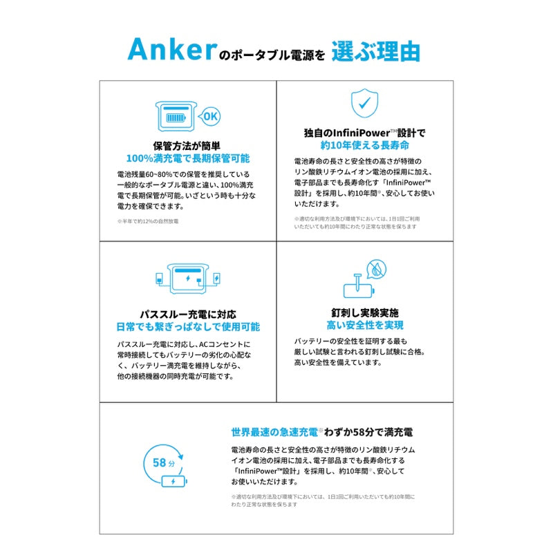 ※Anker Japan 公式オンラインストア会員を対象に、通常18ヶ月の製品保証を5年へ自動延長致します。世界初※GaN搭載ポータブル電源