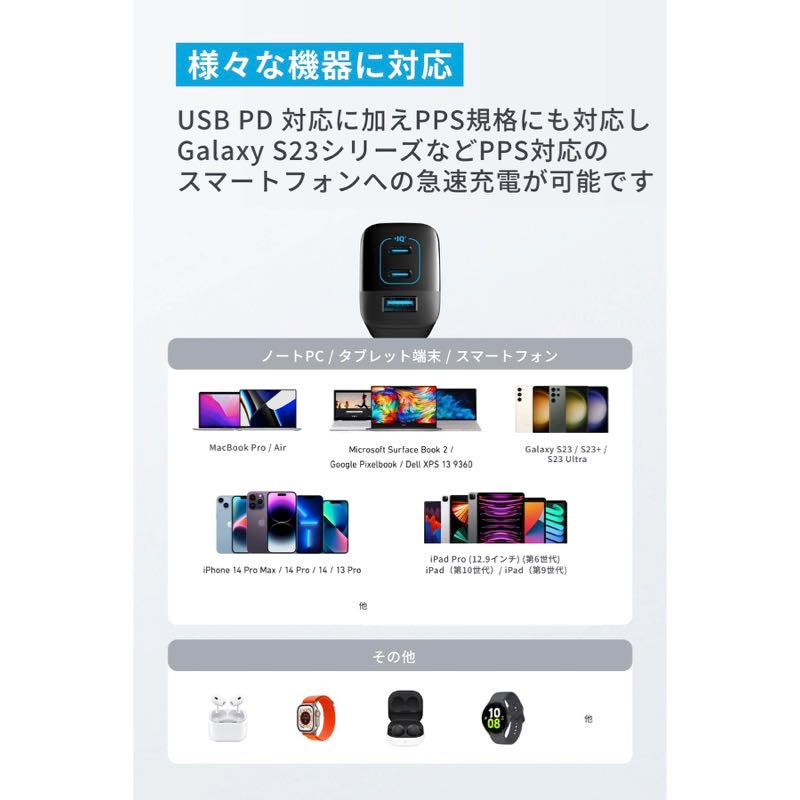Anker Charger (67W, 3-Port) with USB-C & USB-C ケーブル