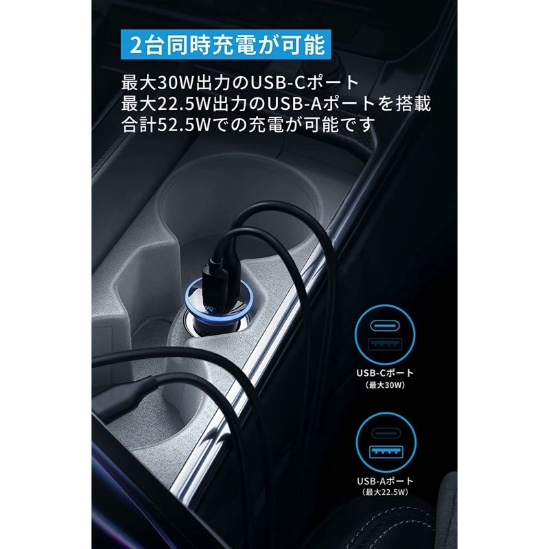 Anker 323 Car Charger (52.5W) with USB-C & USB-C ケーブル